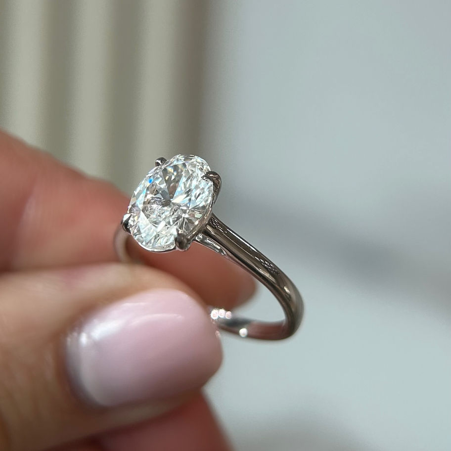 14k white gold ring with a 2ct lab-grown oval-cut diamond